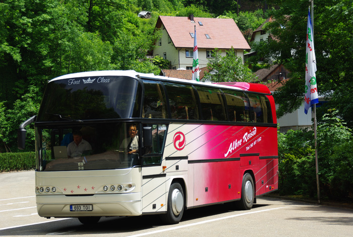 38-kohaline Neoplan buss, milles on olemas pikemaks sõiduks vajalikud mugavused: